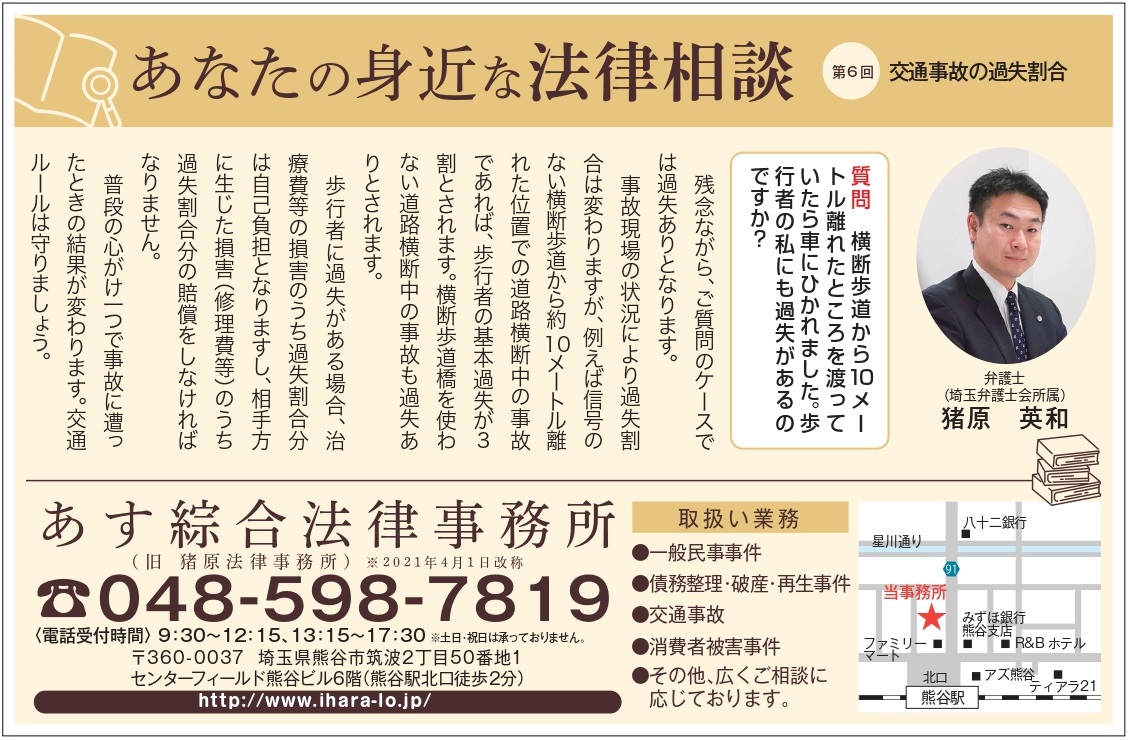 本記事は,横断歩道からやや離れた場所を横断した場合の過失割合の話です。